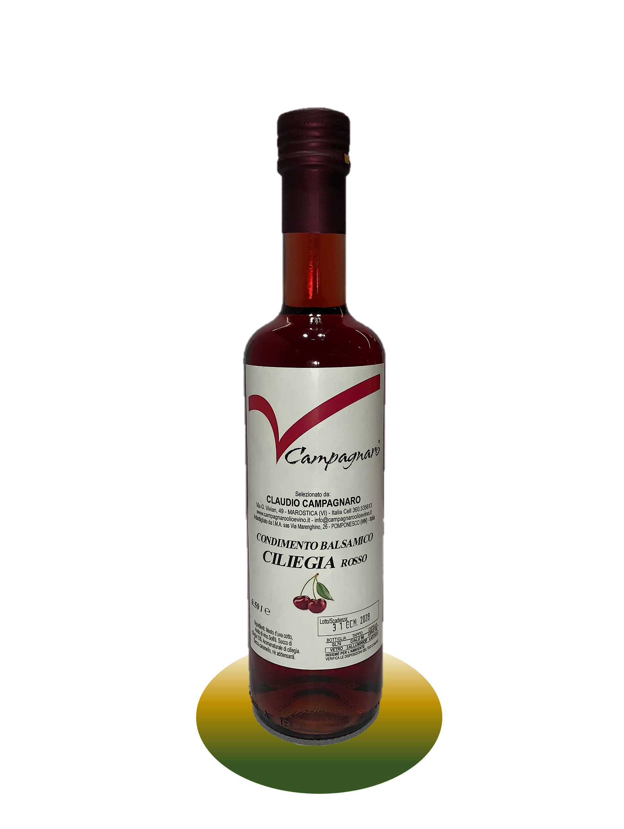 Ingredienti: succo di ciliegia (15%), aroma naturale di ciliegia, mosto di uva cotto, aceto di vino. Senza caramello, nè addensanti. Contiene solfiti.
