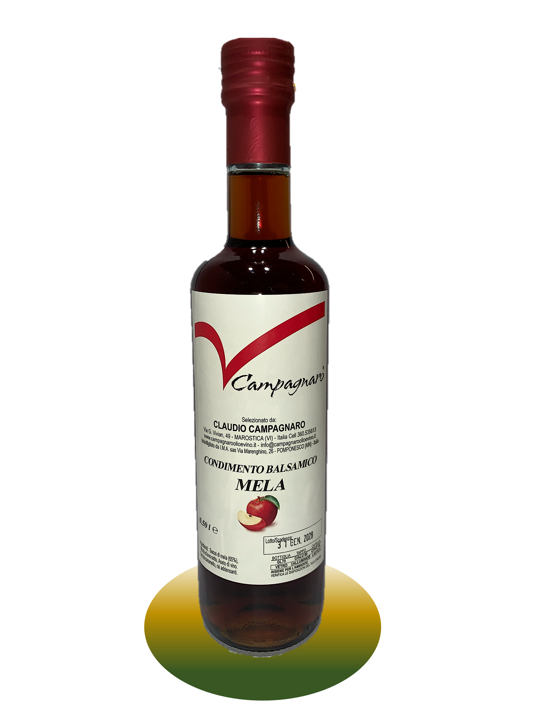 Condimento Balsamico al gusto di Mela. Ideale da abbinare a formaggi, condire insalate e sbizzarrirsi davanti ai fornelli.