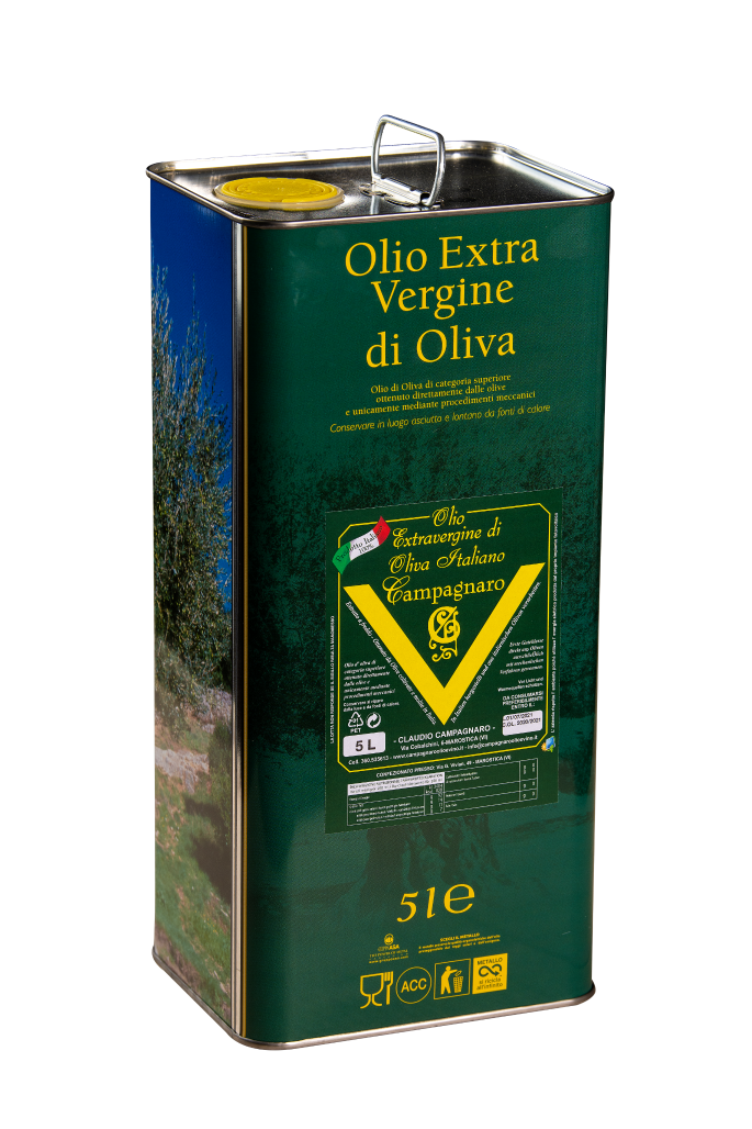 L’Olio Extra Vergine d’Oliva è disponibile in bottiglia di vetro da 500ml e 1L per tavole di case e ristoranti oppure nelle pratiche e convenienti taniche di olio d’oliva sfuso da 3L o 5L di Campagnaro Olio.