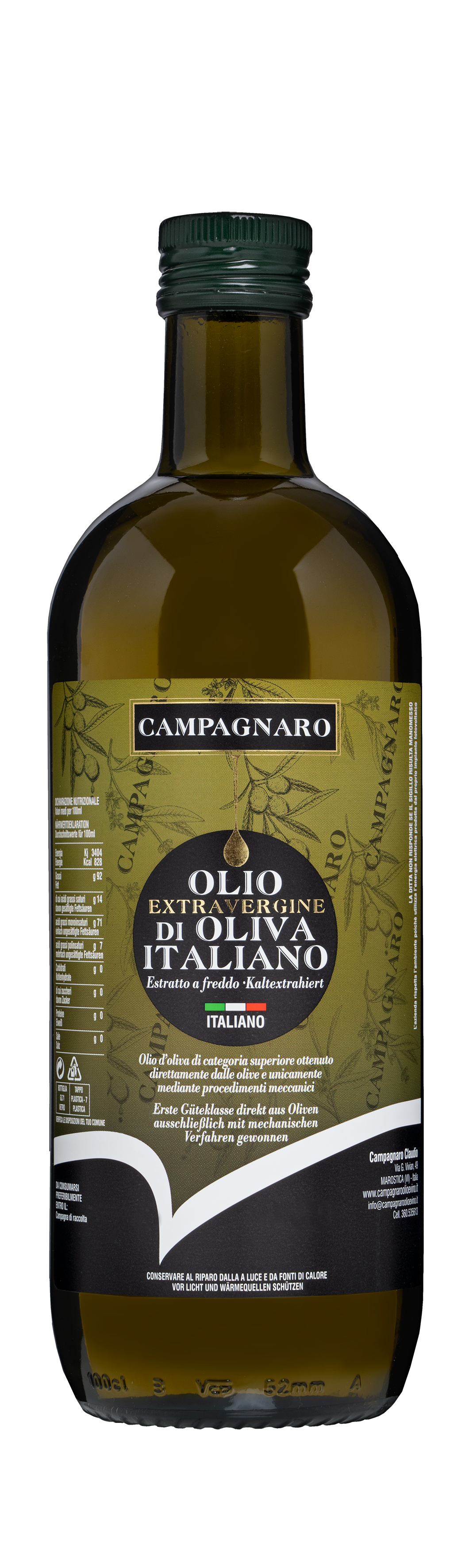 L’Olio Extra Vergine d’Oliva è disponibile in bottiglia di vetro da 500ml e 1L per tavole di case e ristoranti oppure nelle pratiche e convenienti taniche di olio d’oliva sfuso da 3L o 5L di Campagnaro Olio.