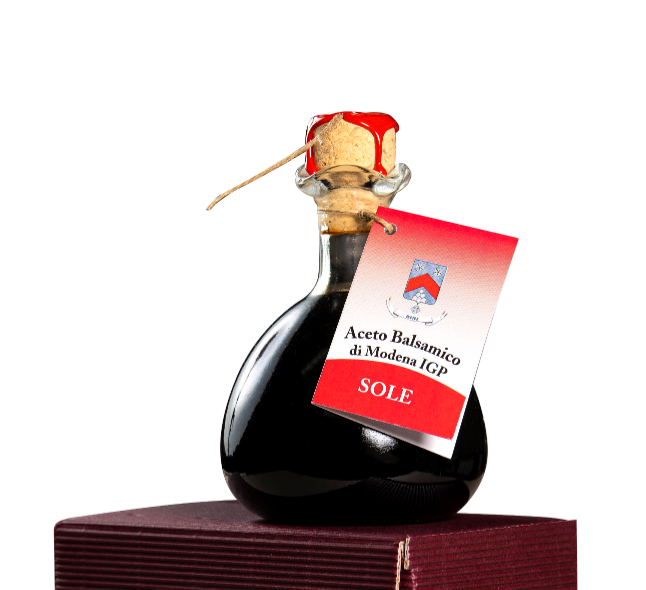 L'Aceto Balsamico di Modena è un'eccellenza enogastronomica apprezzata in tutto il mondo, un prodotto I.G.P. (Indicazione Geografica Protetta) che si distingue per il suo profumo delicato, l’intenso colore bruno e il sapore agrodolce armonicamente acidulo, oltre che per l'assenza di coloranti, addensanti e caramelli.