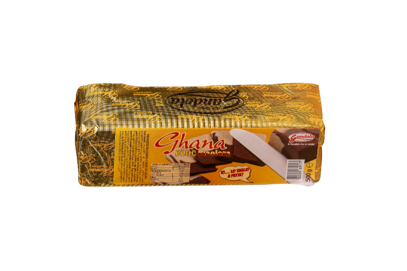 Il lingotto di Cioccolato Bicolore è una merenda perfetta per grandi e piccoli, da gustare una fetta dopo l'altra! La cioccolata bicolore Gandola (esperto produttore dolciario italiano dalla lunga storia) è chiamato "Ghana Bicolore" per sottolineare l'origine del cacao più pregiato dal paese produttore africano per eccellenza.